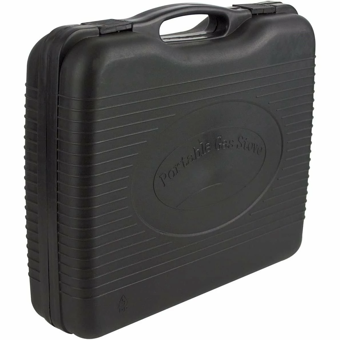 - Aluminum Single Burner Camp Stove with removable enamel-coated Drip Tray