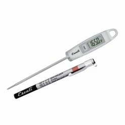 Never overcook steak, lamb, brisket, and other temperamental cuts of meat again with the Escali Gourmet Digital Thermometer in Silver! The key to cooking tender, mouthwatering meat is making sure it reaches & maintains its target temperature, and with the Gourmet Digital Thermometer, you can use the extra-long probe to easily reach into the middle of your food to monitor the temp throughout the cooking process. With a large easy-read digital display and a silky smooth ergonomic handle, this thermometer is equipped with a stainless steel step-down probe that’s designed to quickly & precisely measure the temperature while promoting moisture retention making it great for monitoring the temperature of your baked goods too! It also comes with a protective probe sheath that features an internal target temperature guide for poultry, beef, pork, lamb, & veal and has a nifty pocket clip so you can keep it at hand while cooking. For melt-in-your-mouth meat & fluffy baked goods, try the Escali Gourmet Digital Thermometer!