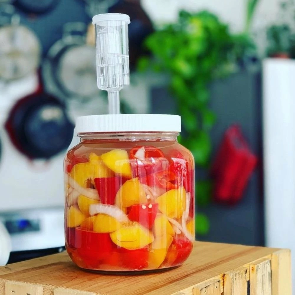 Create your own bold hot sauce personalized with your favorite peppers, flavors, & spices with the FarmSteady Fermented Hot Sauce Kit! This kit includes the essential tools for making homemade hot sauce, including a 1/2 gallon glass fermenting jar, an airtight lid & airlock, a glass fermentation weight, & kosher salt. Compared to non-fermented hot sauces, fermented hot sauces produce a more complex flavor and contain probiotics that help maintain a healthy gut. Making your own fermented hot sauce also gives you complete control over the flavor profile, salt content, & spice level, allowing you to craft a perfectly personalized batch of hot sauce tailored to your exact liking.