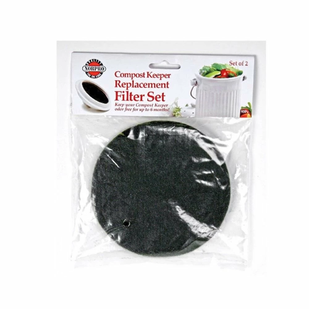 Keep your Norpro Compost Crock smelling fresh and clean with the Norpro Compost Filter Refills! It’s recommended to replace the filter in your Norpro Ceramic Compost Keeper every 6-months, and with this refill replacement set, you’ll be prepared when it’s time to replace. This set includes two charcoal replacement filters that fit snuggly inside your Norpro Compost Crocks to help absorb odors from the contents in your compost bin. These replacement filters are compatible with Norpro Ceramic Composts Keeper models 83-NORPRO & 93-NORPRO and will keep your kitchen smelling fresh!