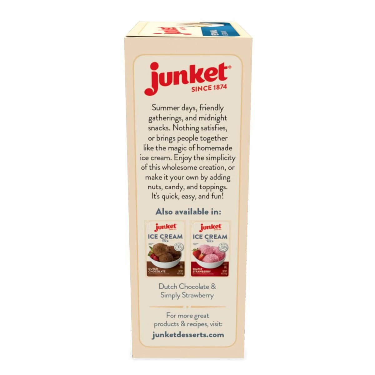 Smooth and creamy enough to enjoy on its own, this Vanilla Ice Cream Mix from Junket also serves as a great base for all of your favorite flavors of frozen treats and mix-in ingredients! Bring the simple delight of homemade vanilla ice cream to your table whether using an ice cream maker or mixing it by hand. Simply combine 1.25 cups of whole milk and 0.75 cups of heavy cream with one box of mix and follow the instructions on the box to create one quart of vanilla ice cream for a range of refreshing desserts like ice cream cakes, sandwiches, and cookies!