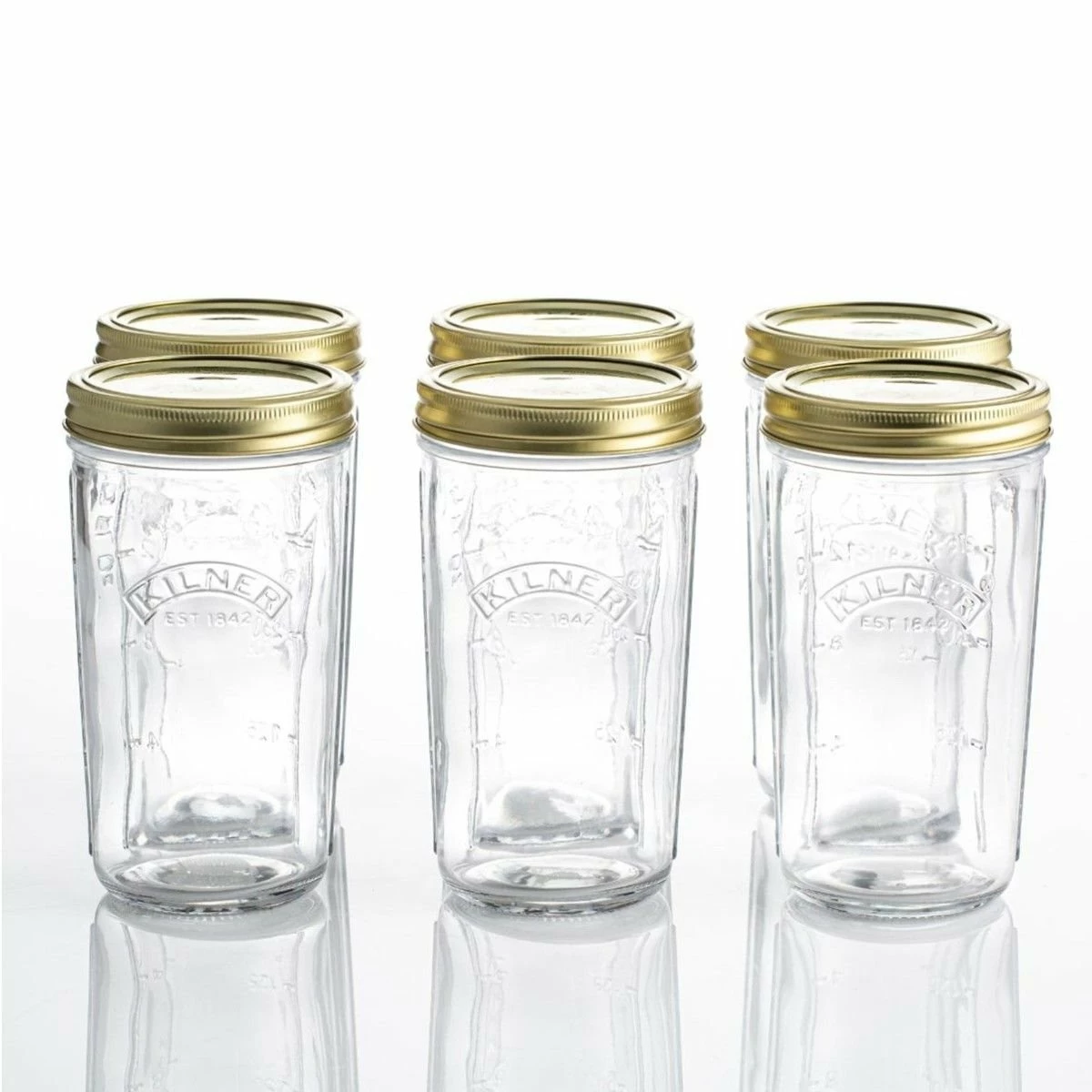 Regardless of the type of preserve you are making, you can rely on the Kilner brand to provide the best seal and freshness in the business! The jar is constructed of durable, perfectly clear glass, and features the embossed Kilner logo as well as embossed volume lines, to ensure your measurements are correct! The wide mouth of these jars makes them perfectly suited for preserving larger pieces or whole fruits and vegetables. The screw band can be re-used up to 10 times making this jar environmentally friendly, as well. These jars are dishwasher safe, making cleanup easy! Wash the jars before first use and don’t pour boiling water directly into the jars.