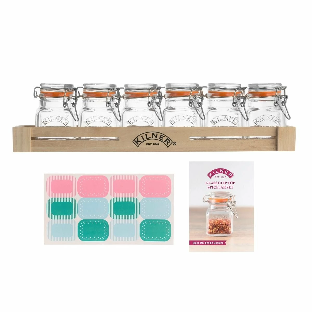 Included with Kilner Glass Swing Top Spice Jar Set: