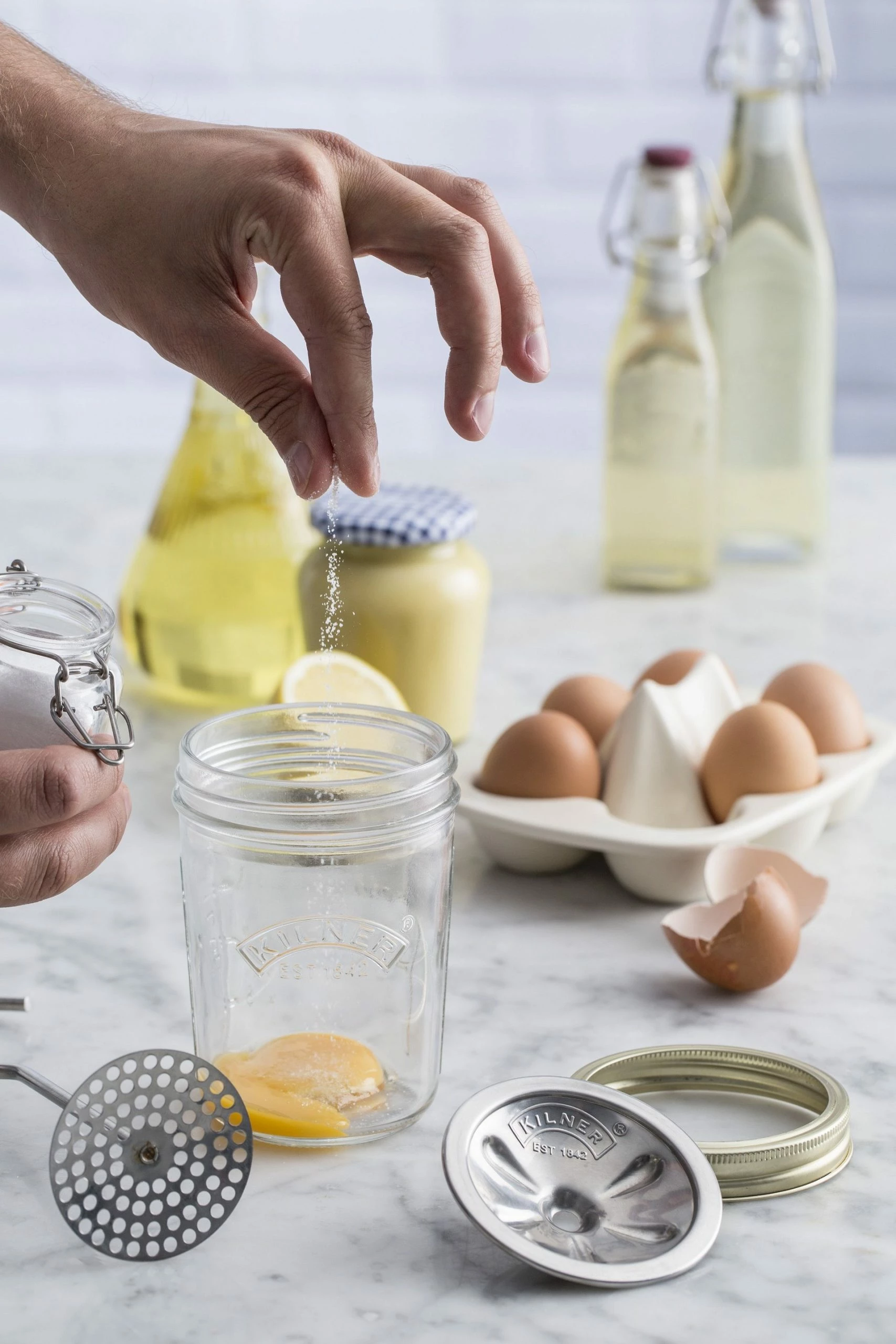 If you love to make every part of your meal from scratch you need the Kilner Mayonnaise and Sauce Jar Set. This simple set includes everything you need to make a plethora of sauces in less than five minutes. The mesh plunger features a comfortable handle that allows you to work the ingredients together while the oil dish allows you to slowly add oil as you make your sauce, creating a perfect sauce every time. This versatile set minimizes the mess by allowing you to make and store your sauces all in one jar. The 11.83oz jar features an airtight seal to keep your mayonnaise fresh for up to a week. Make delicious, custom sauces in minutes and impress your family and friends with the Kilner Mayonnaise and Sauce Jar Set.