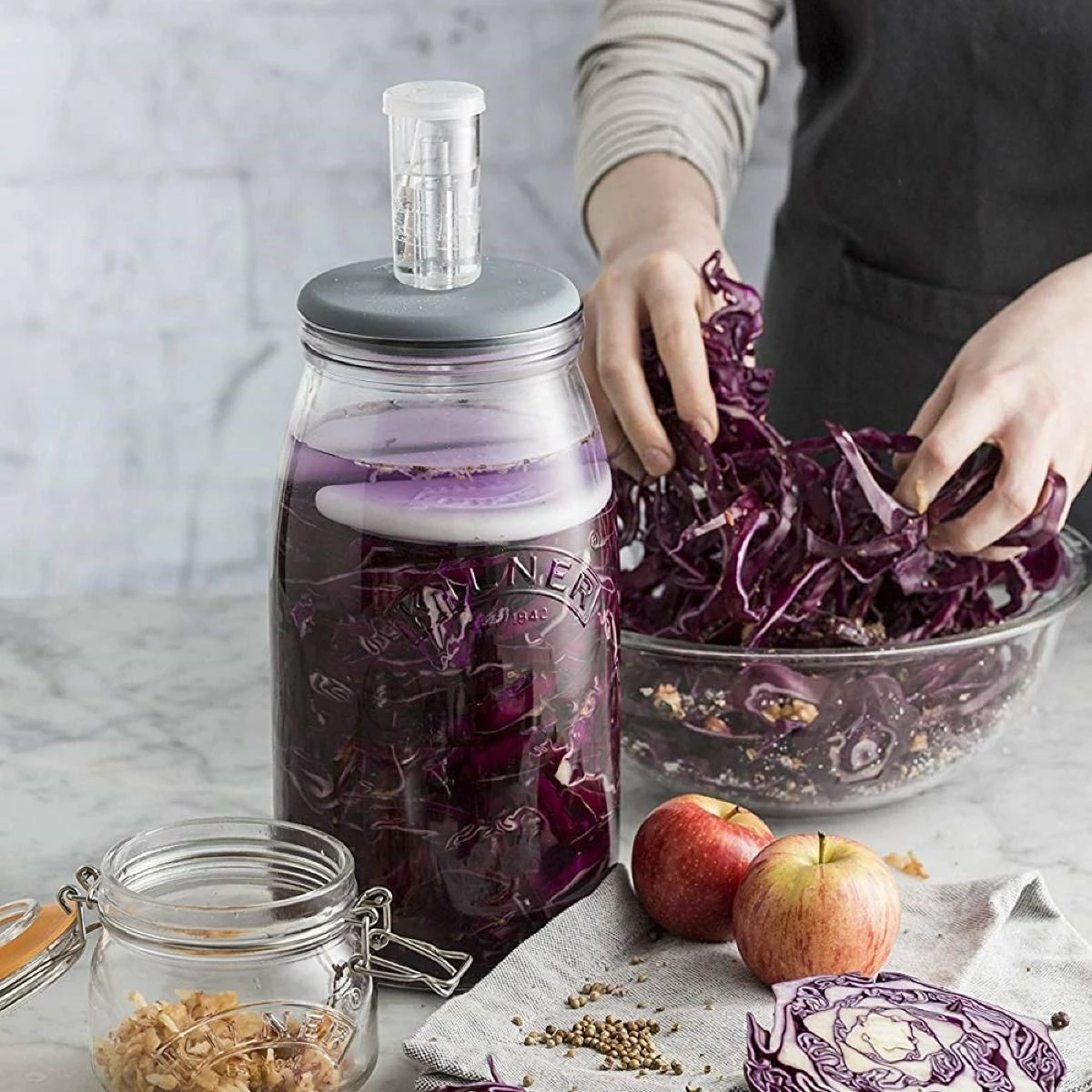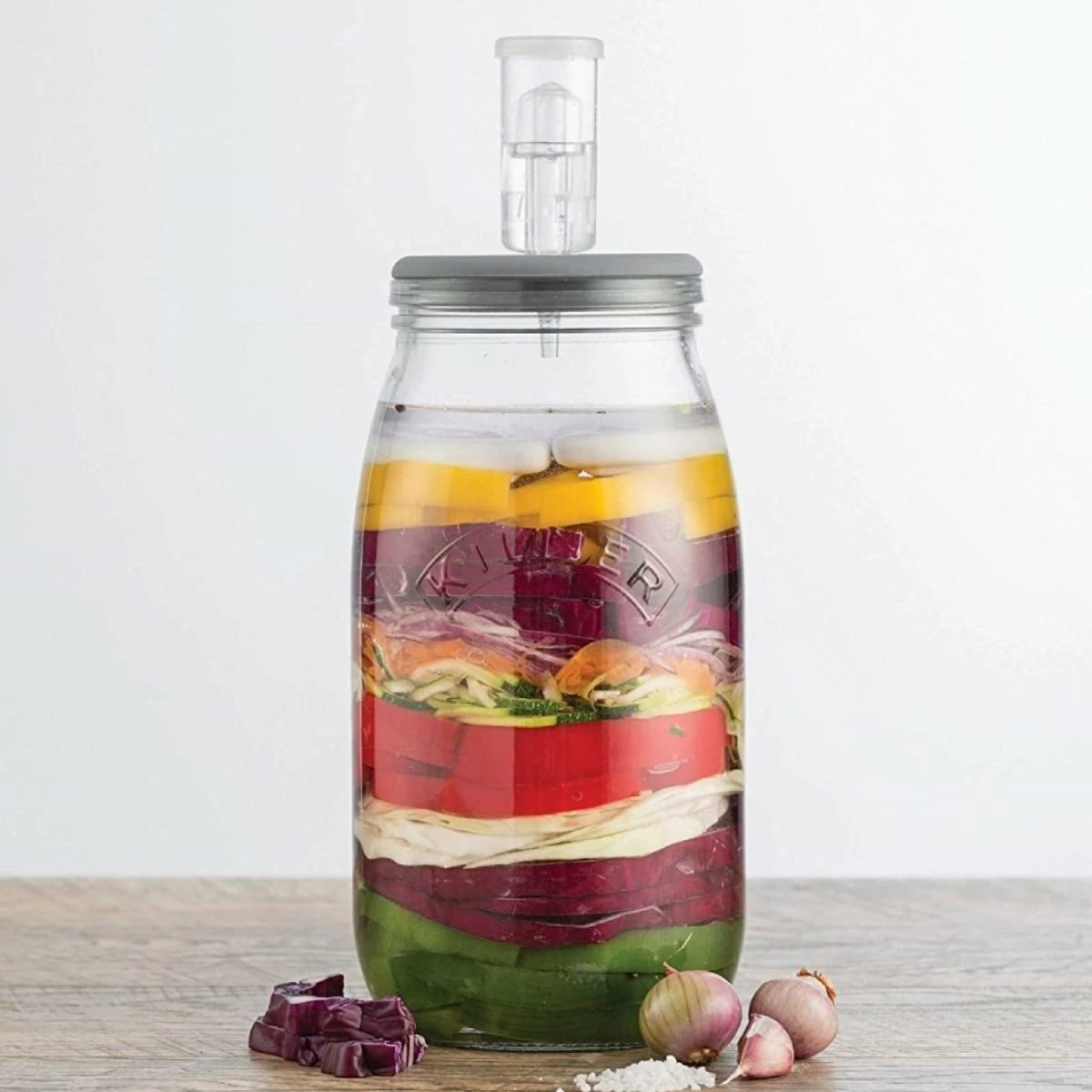 As you continue using Kilner jars and storage containers, have you thought about using them to ferment foods? If you have a 3-Liter Kilner Jar, then you may want to check out the Kilner Silicone Fermentation Lid & Air Lock Set. The lid is made from high-quality silicone which works with the Air Lock provided to create an anaerobic environment for ideal fermentation as the lock releases gases from the jar and keeps air out. Make delicious probiotic foods in the comfort of your own kitchen with the Kilner Silicone Fermentation Lid & Air Lock Set!