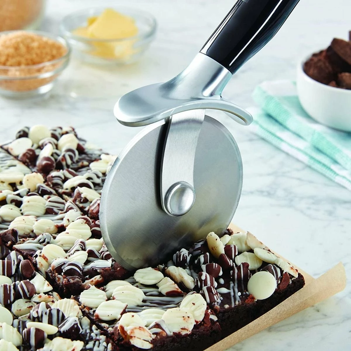Tired of slicing pizza only to ruin your beautiful spread of ingredients? The KitchenAid Classic Black Pizza Wheel is here to save your home-pizza experience! This pizza wheel features a super-sharp stainless steel wheel designed to press ingredients together so your pizza stays perfect while being cut. Not a fan of pizza? This pizza wheel is equally great for cutting a variety of meals from sandwiches to candy bark and more. Whip up a delicious pizza and slice it like a pro. Get the KitchenAid Black Classic Pizza Wheel today.