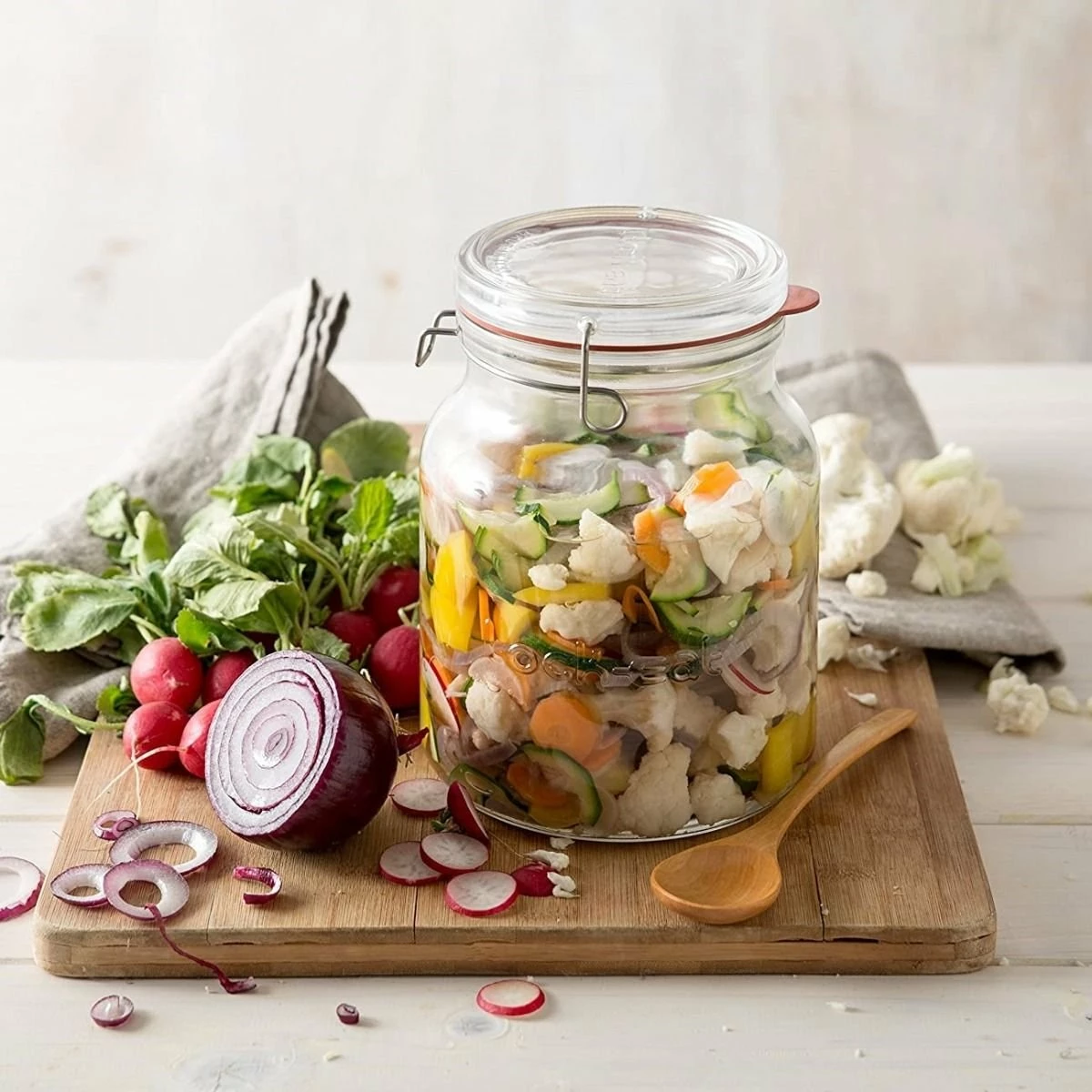 Preserve and store your favorite vegetables, jams, jellies, and so much more with the 68oz Lock-Eat Handy Jar from Luigi Bormioli. This glass jar is designed with a completely removable lid, so it can transition from canning to serving and storage. With an airtight lid and included natural rubber gaskets, this jar is a perfect choice for preserving your favorite foods. Turn your pantry into an organized sanctuary by storing any number of dry goods, from sprinkles to snacks, in this clear container. Add some versatility to your canning and storage collections with the Lock-Eat 68oz Handy Jar from Luigi Bormioli, get yours today!