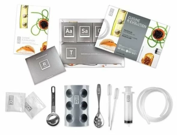 The Molecule-R Cuisine R-Evolution kit lets you experiment with the same techniques seen on Top Chef and in high-end restaurants. Dress up your meals and rediscover the joy of playing with your food with the Cuisine R-Evolution molecular gastronomy kit from Molecule-R!