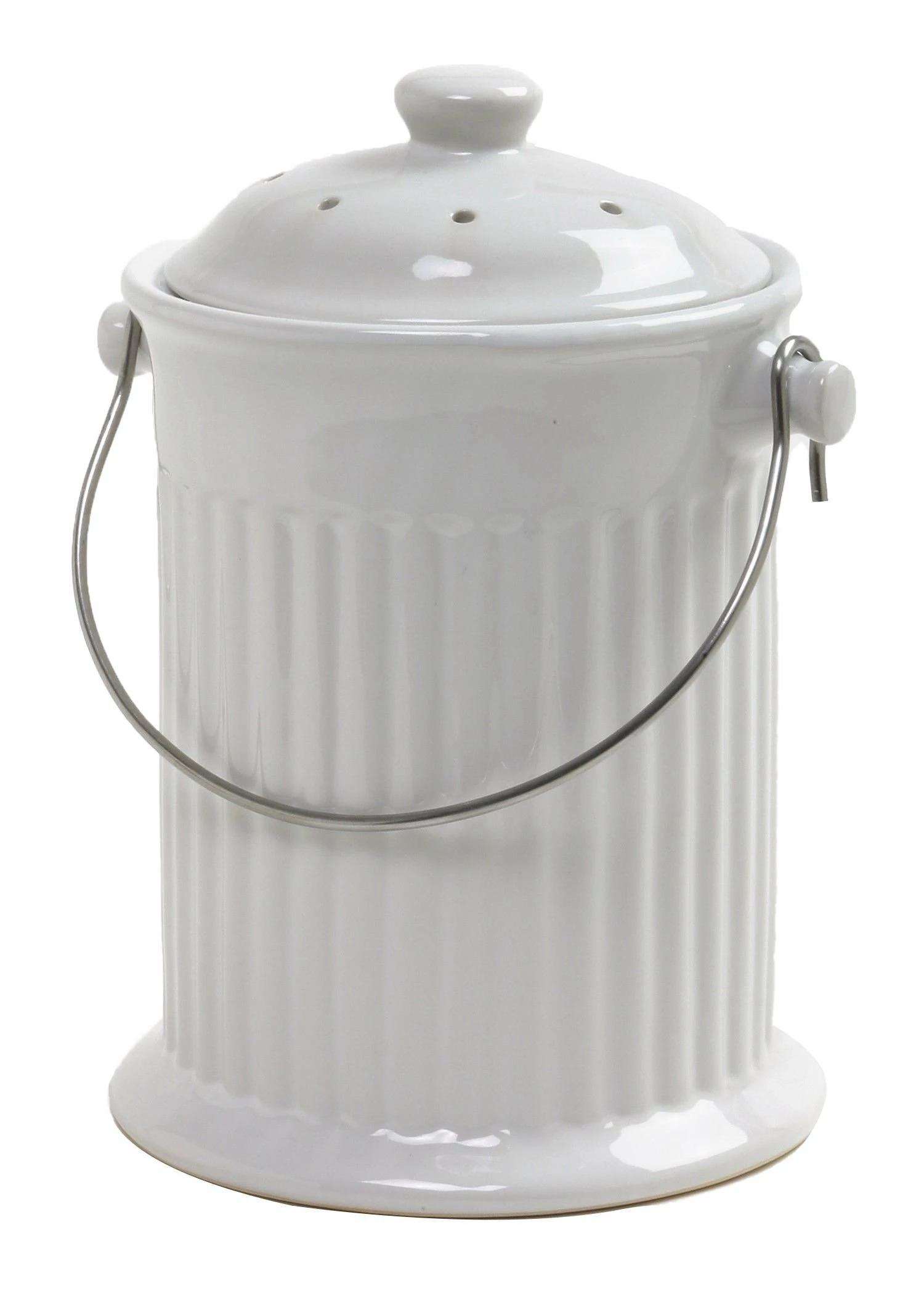Corral those vegetable scraps and peelings beautifully, and enrich your garden at the same time with the Norpro Ceramic Compost Crock with Lid. The white, old fashioned shaped crock holds 4 quarts of egg shells, coffee grounds, clippings, and spoiled greens in a stylish way on your countertop till you can remove it to your garden compost pile. The kitchen compost crock has a sturdy stainless steel handle for moving it when needed, and a replaceable Norpro filter is included to keep smells to a minimum. Composting and recycling is important to the earth, and will help your plants have improved health and vitality. This Norpro Ceramic Compost Crock can become an important tool in your eco-friendly kitchen!