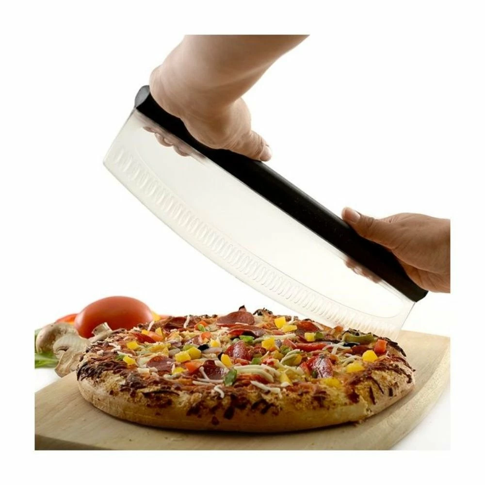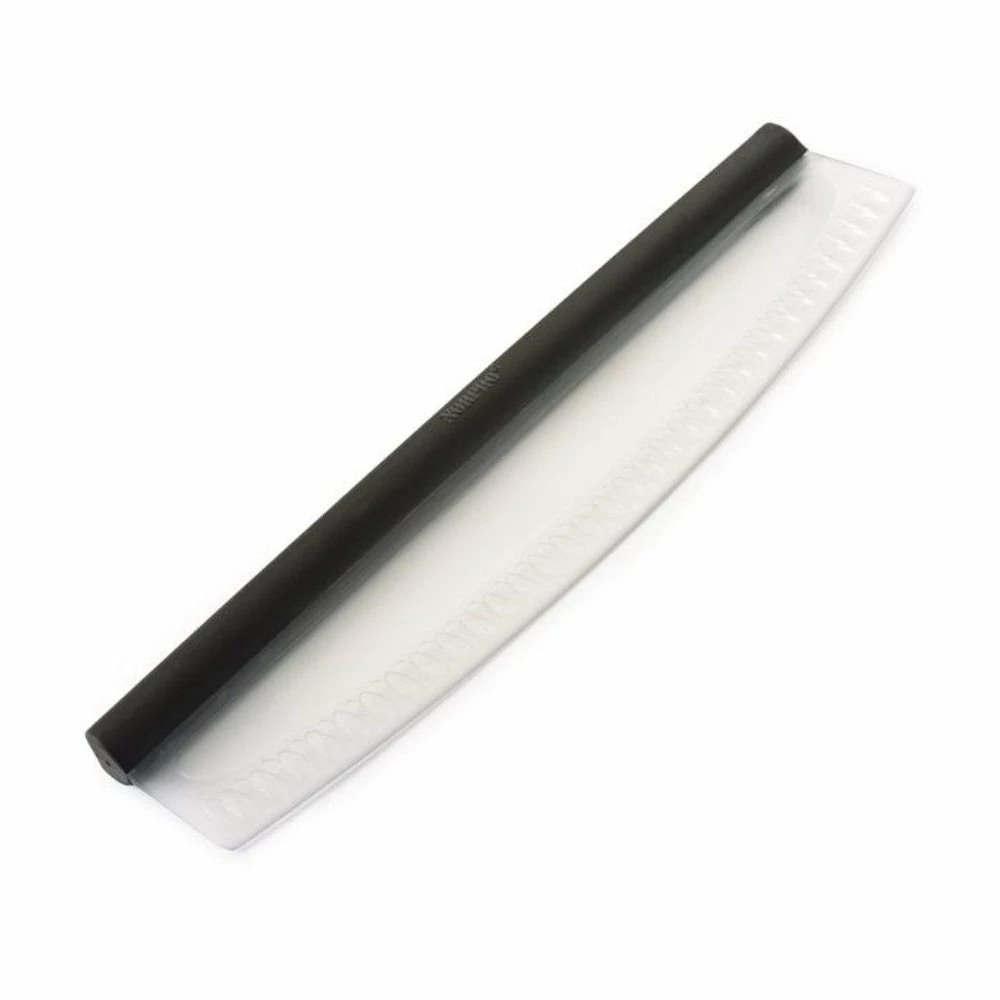 Slicing pizza has never been easier than with the Grip-EZ Pizza & Dessert Slicer from Norpro. This mezzaluna-style cutter features a curved blade that slices through your pizza, brownies, and about anything else effortlessly. The blade is gentle on your baking pans and tough on crust! The see-through blade makes it easy to keep your lines straight and its scalloped edges quickly release food as your cut. Whether it’s pizza, a dessert, or a dessert pizza,