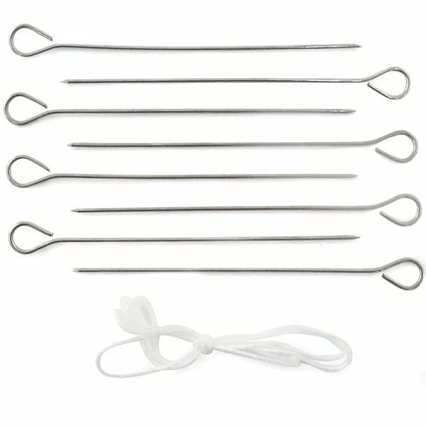 Great for around the holidays or gatherings, Norpro Poultry Lacers are made from stainless steel construction and come in a pack of 8. Each poultry lacer is 4 inches long in total.