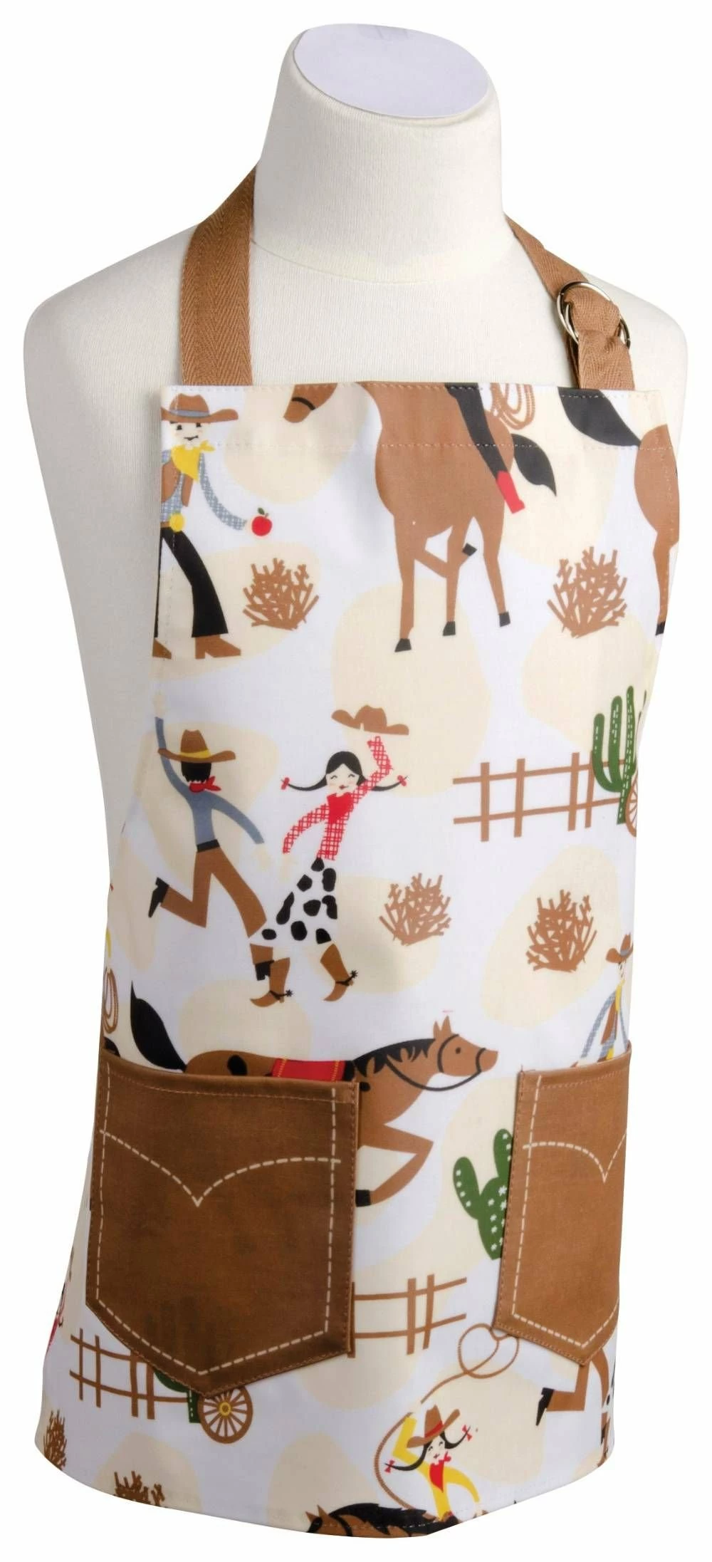 Start the culinary adventure with children with a KIDS rootin tootin cowboy apron from Now Designs. The western, cowboy and cowgirl pattern bring a fun look and feel to a child’s culinary education. Made from 100% cotton, the 9 inch wide apron will keep food spills from ruining your children’s clothes. Gift the respectable and much appreciated skill of cooking to your children and start with a KIDS apron from Now Designs.