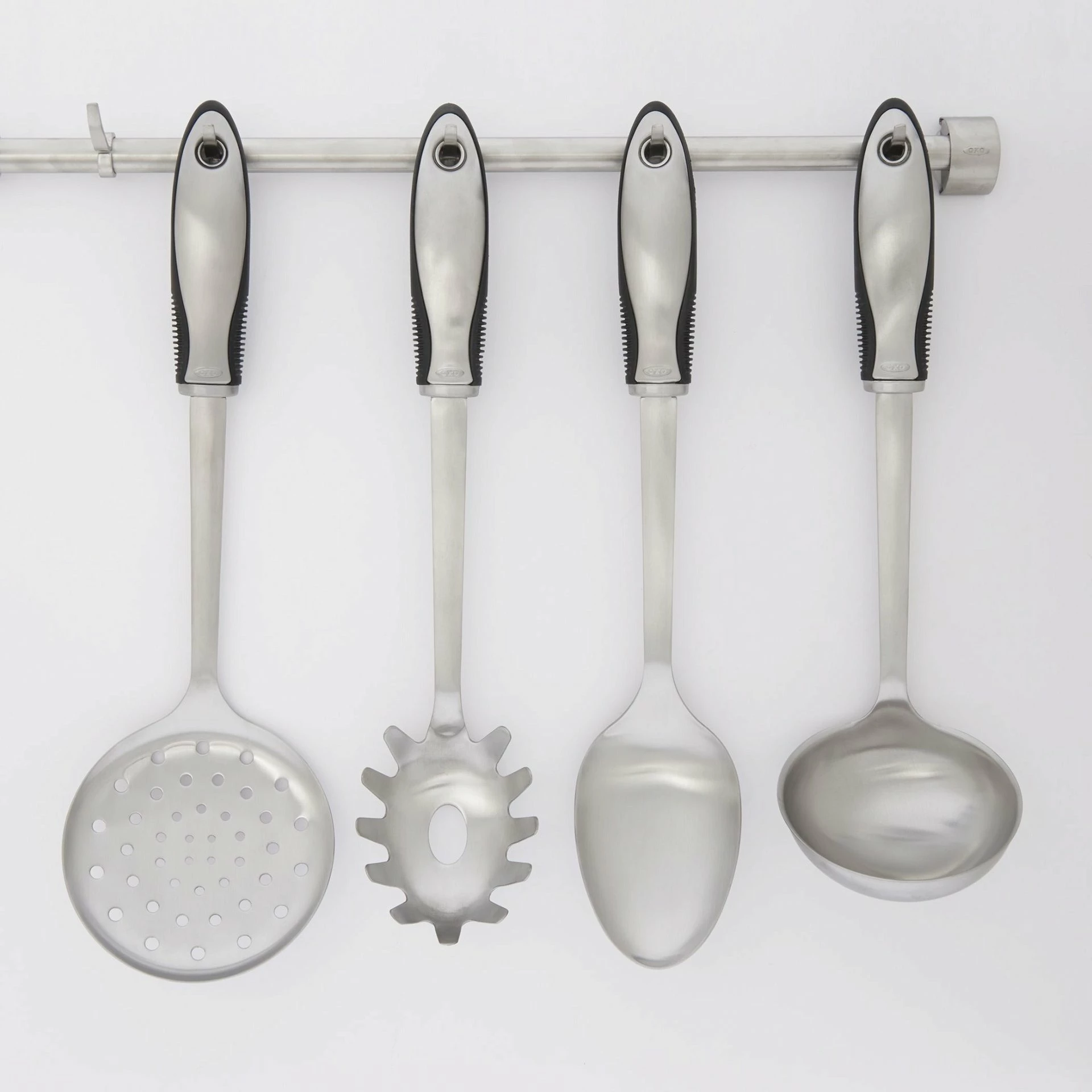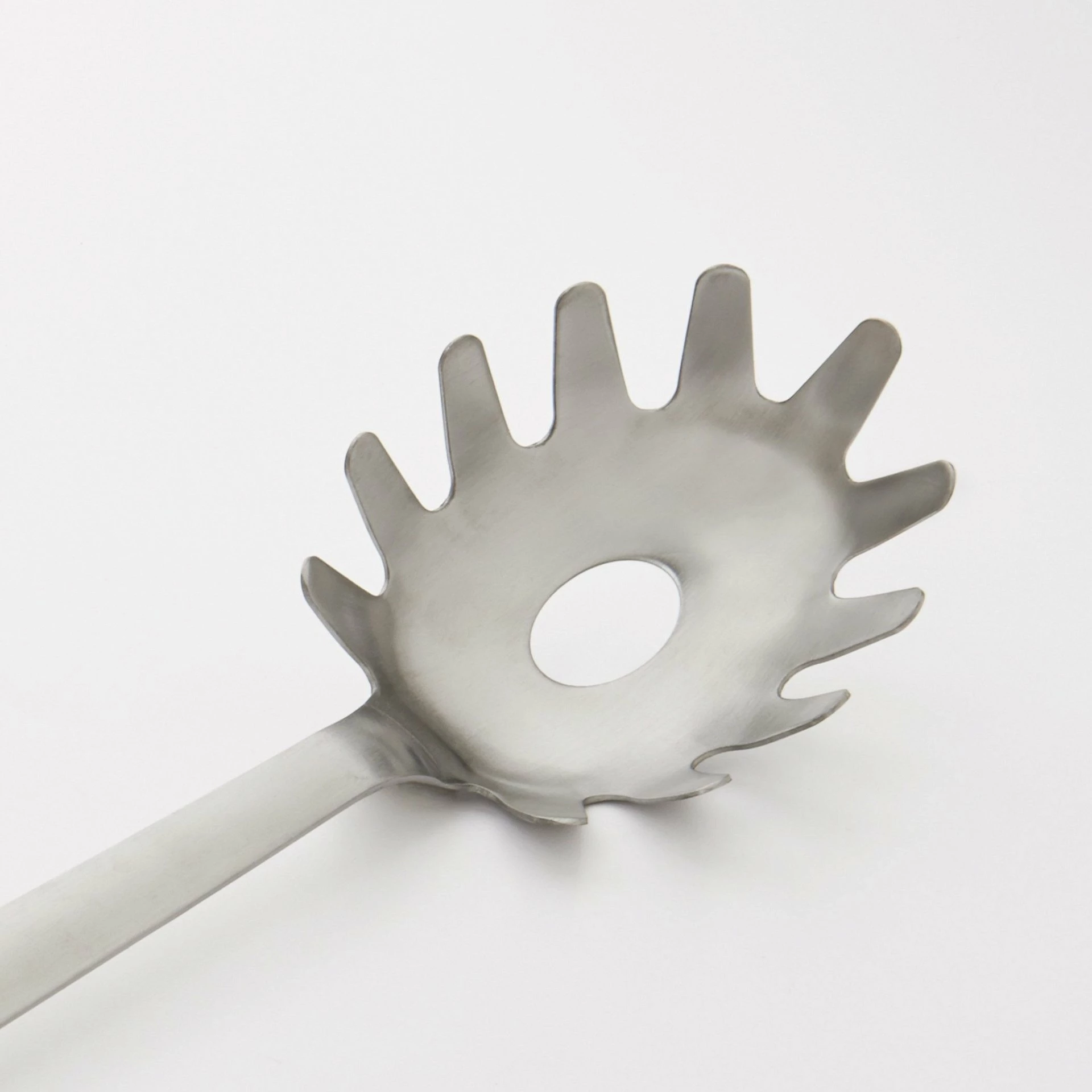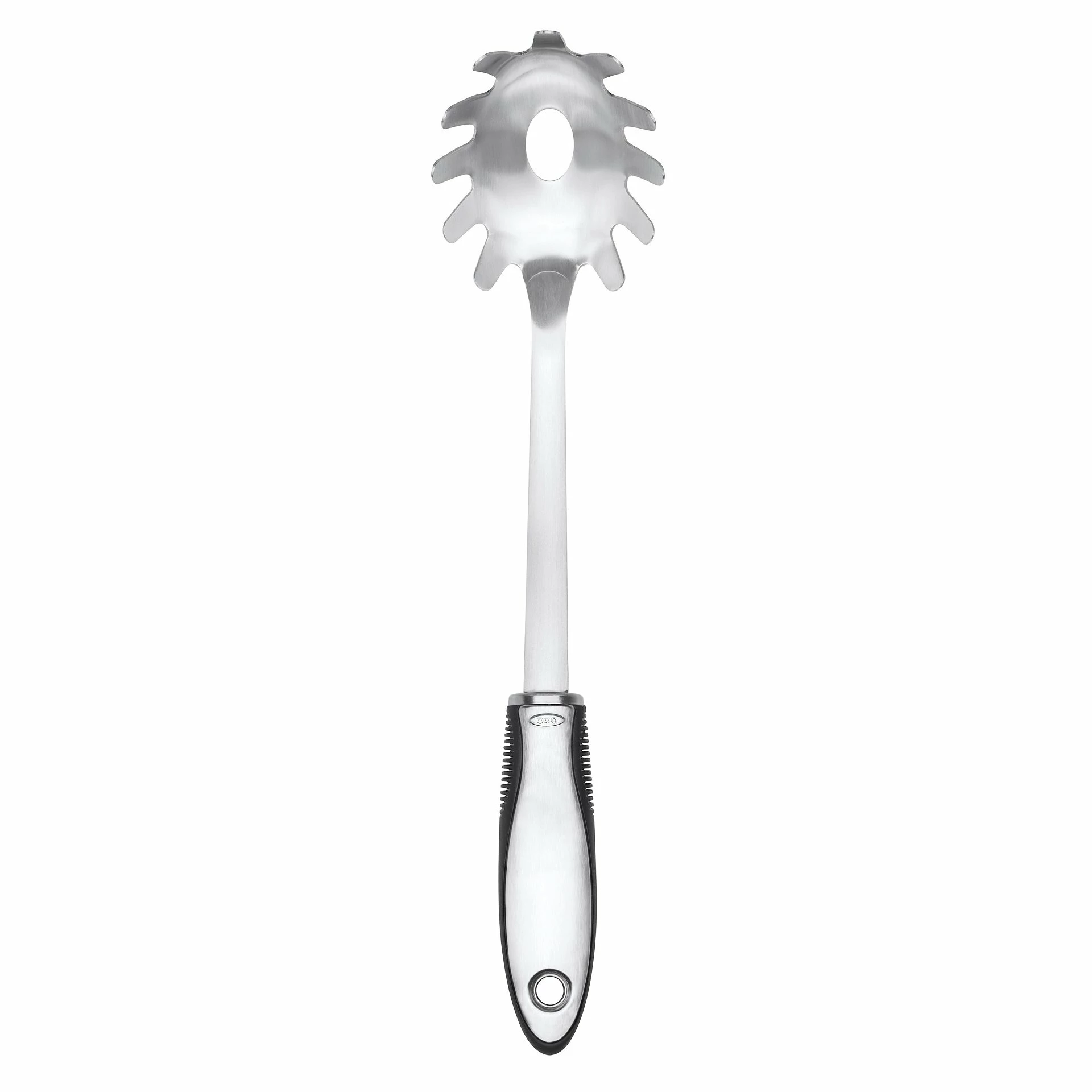 Serve a delicious batch of homemade spaghetti with the OXO SteeL Spaghetti Server! This durable spaghetti server is made of brushed stainless steel with a sleek matching handle that’s constructed with flexible, soft grip fins for comfort and control. This serving utensil has a large head that’ll make serving spaghetti, angel hair, and other pastas a breeze! Serve in style with the OXO SteeL Spaghetti Server today!