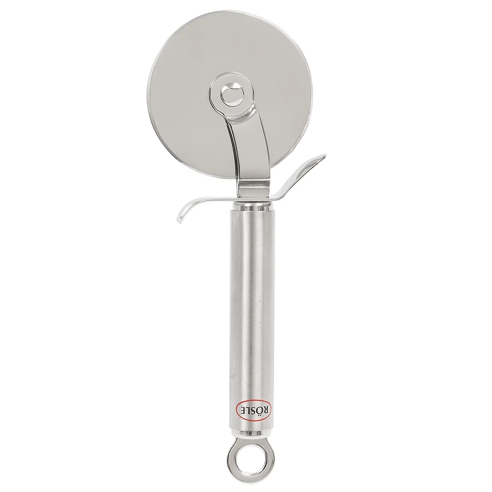 With a firmly anchored, strong wheel, the Rosle pizza cutter slices through thick and thin pizzas without displacing toppings. Its stainless steel construction is long-lasting and prompt to clean, while its handle ensures a comfortable grip. When inactive, it can be stored on its integrated hanging ring for convenience.