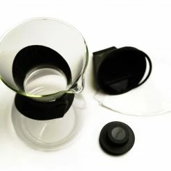 - Glass carafe & pour over brewer
