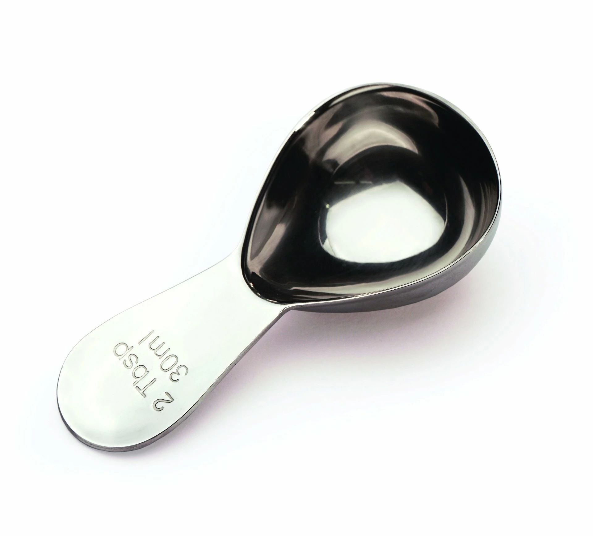 Get the ideal portion of coffee every time with this classic coffee measuring scoop thanks to RSVP. This RSVP Coffee Scoop is made from 18/8 stainless steel and measures a standard two tablespoon serving (1/8th cup). This perfect portion scoop fits into small canisters and jars. Constructed with a comfortable thumb grip and dishwasher safe.