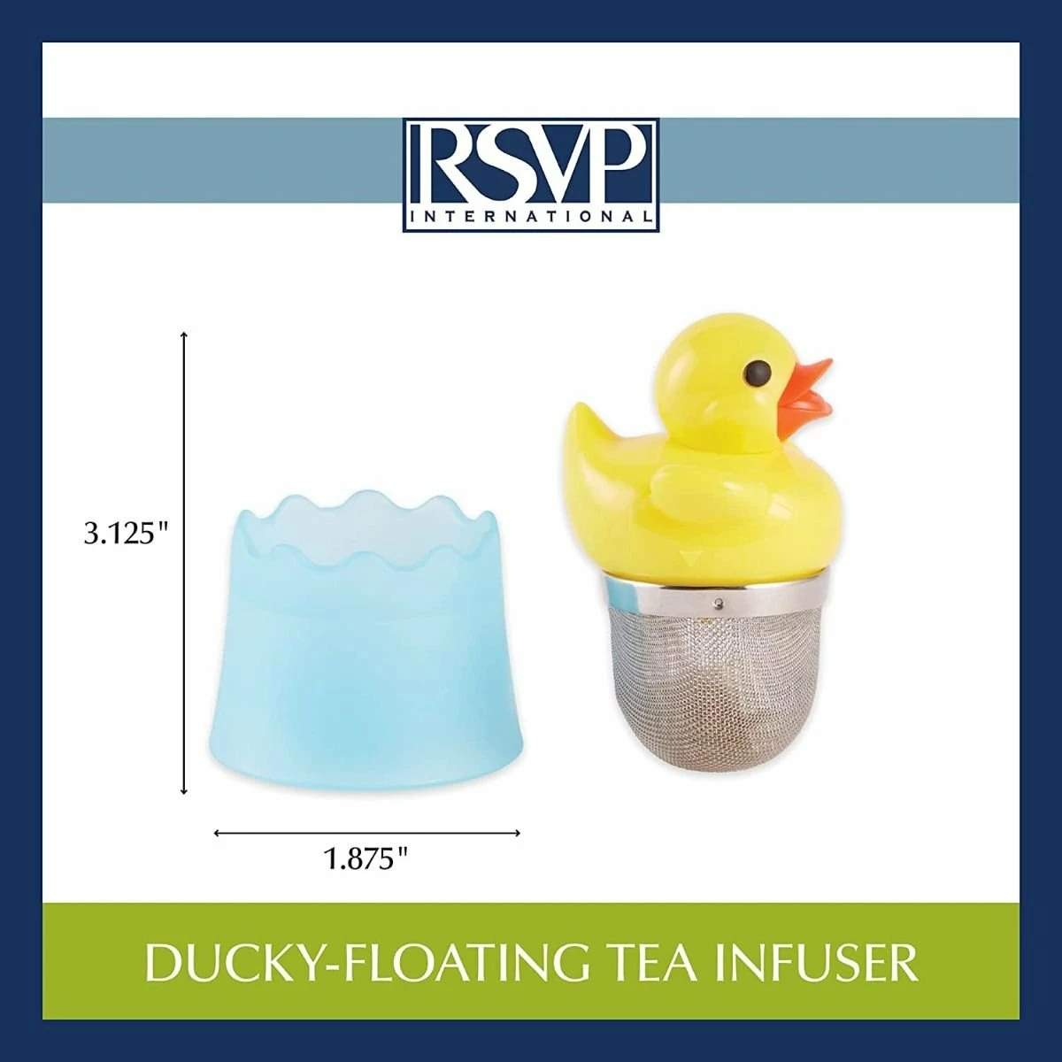 The RSVP Just Ducky Tea Infuser is an exceptionally cute infuser for your loose tea leaves. Recommended to be used with coarse tea leaves, the stainless steel mesh infuser attached to the Ducky is hidden in your tea while the Just Ducky Floats around. The Just Ducky tea infuser comes with a light blue “water” base to hold on to your duck while he’s not floating around your cup. This duck makes a wonderful gift for your tea loving friends. Hand washing is recommended.