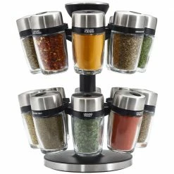 Cole & Mason 16-Jar Herb & Spice Carousel Spice Rack | Stainless Steel & Glass