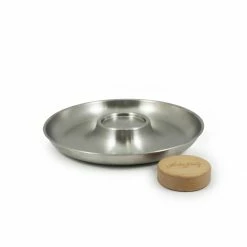 - Place the wooden puck onto the middle of the tray to hold your oyster firmly as you shuck