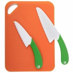 The 11 Piece Denim Chef’s Kit is for any kid who wants to make a style statement while cooking! The apron is made of 100% cotton denim and adjusts to fit kids of any size. The Curious Chef denim will make any kid feel like a grownup, but the orange accents make the outfit fun. The whisk and large silicone spatula silicone and grips are also orange to match their apron. The Curious Chef 11 Piece Denim Chef kit also comes with a poly spoon, a star cookie cutter and a color coded 6 piece measuring spoon set. A great gift for any kid who wants to cook and dress the part!