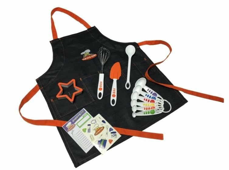 - 1 Whisk | 1 Spatula | 1 Spoon | 1 Star-Shaped Cookie Cutter | 6 Measuring Spoons | 1 Apron