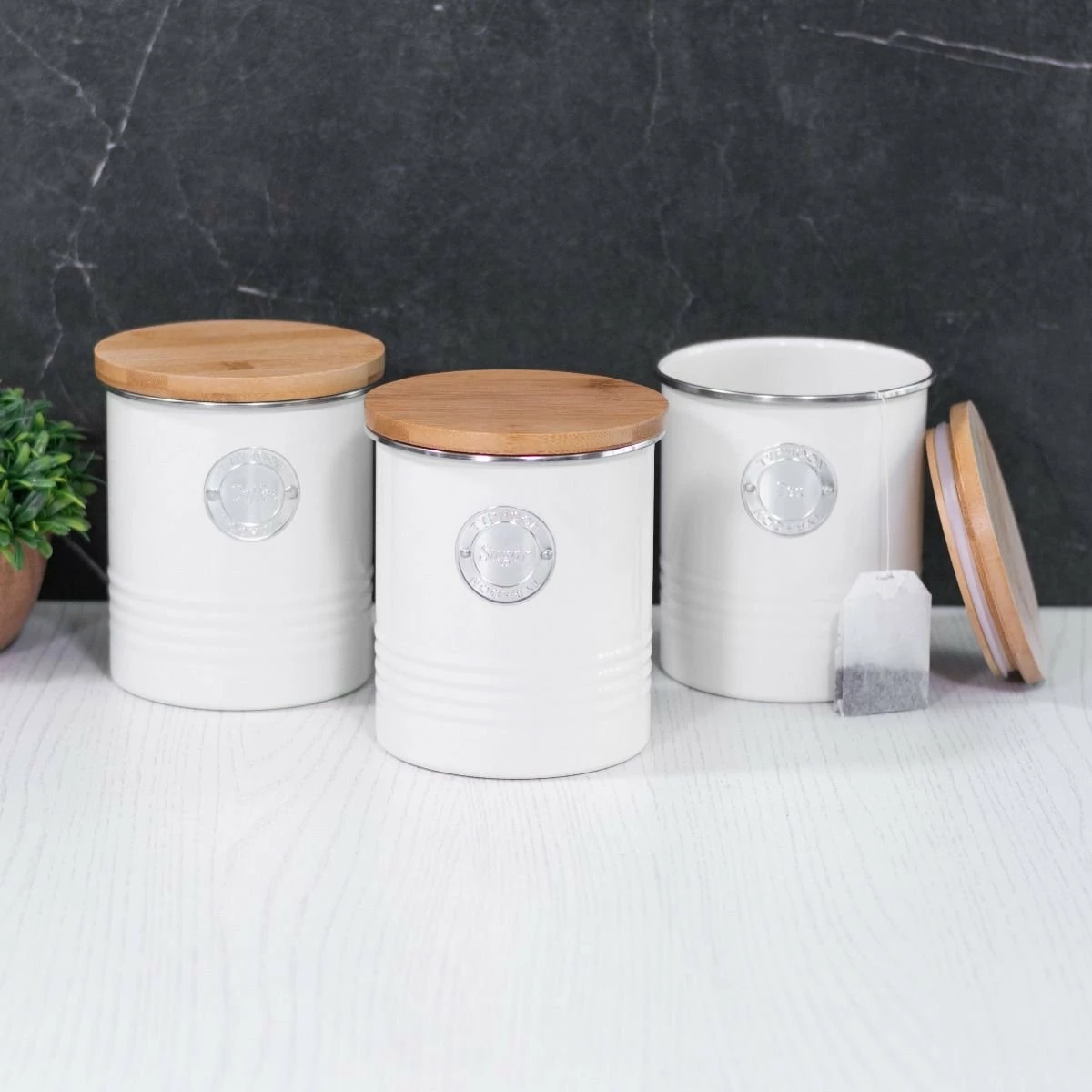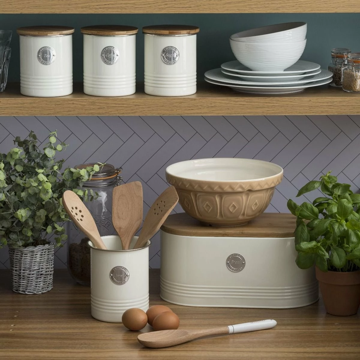 Experience only the best tasting coffee around with fresh ingredients stored securely within the Living Cream 33.8-Ounce Coffee Canister by Typhoon. Drawn from sustainable forests, the bamboo wooden lid sits comfortably on top of the cream canister for an airtight seal that lasts. Very durable with a seamless design, the canister, however, has enough space to hold and store plenty of your favorite coffee grounds or beans. The coffee container holds up to the wear and tear of daily use, a benefit of high-quality manufacturing. The best method of caring for the canister and lid is handwashing. So, keep your daily coffee drinking alive and well from the countertop with the Typhoon Living Cream 33.8-Ounce Coffee Canister.