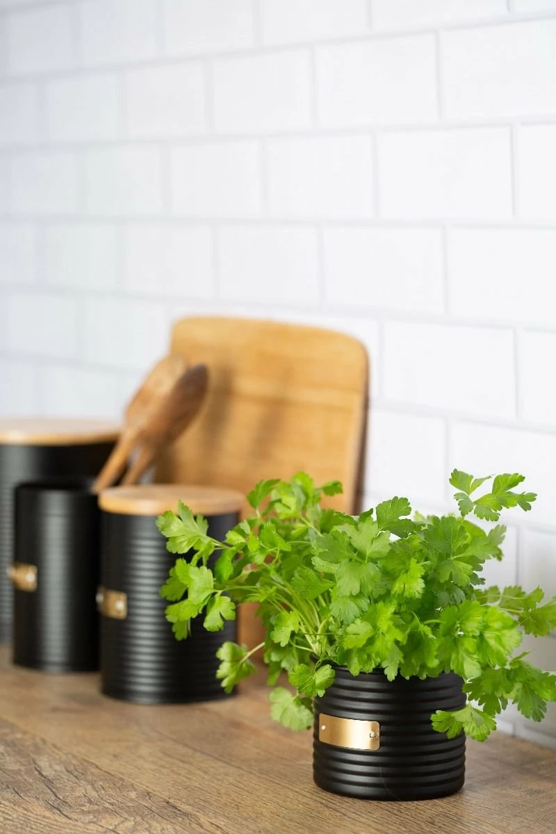 Fresh herbs have never been more accessible than with the Typhoon Otto Collection Herb Planter in Black. This coated-steel planter is durable, so it’s going to withstand even the most chaotic of kitchens. The black finish is a great complement to existing kitchen aesthetics and of course fits in with the other pieces of the Otto Collection. With a compact design, this planter is great for both small and large kitchens.