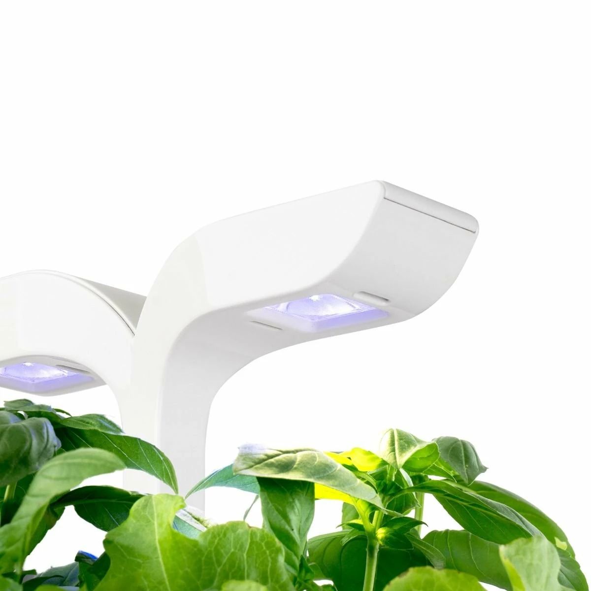 Veritable® Lighting: Veritable® Gardens utilize their special high-end LED technology that employs a color spectrum of blue and white wavelengths that have been adapted specifically for edible plants. The blue wavelengths guarantee faster plant growth, while the white wavelengths activate essential oils and rich flavors. Each garden is constructed with 1-2 adjustable light poles that can be raised or lowered for different plant sizes and features an optical lens that focuses 100% of the LED light directly on the plant to optimize energy consumption. The controlled lighting system stays on for 16 hours a day and turns off for 8 hours at night, imitating the natural daylight cycle (no natural light required), making all Veritable® Gardens perfect for growing all year long in any indoor setting, including rooms with no windows!