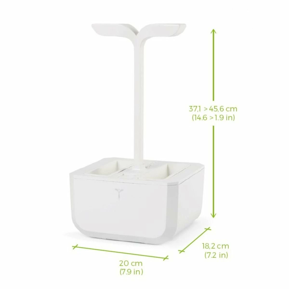 - Elegant garden housing is made of ABS & PP plastic and is designed to be displayed beautifully in the home – plus, it’s 100% silent!