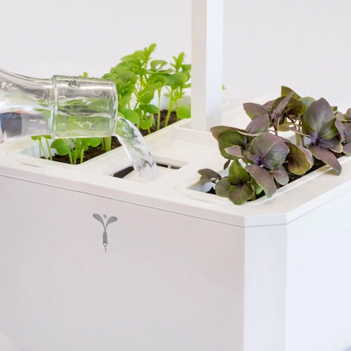 Veritable® Irrigation System: Veritable® Gardens are designed with a fully automated watering system. All you need to do is add water to the reservoir. The passive hydroponic system and Lingot® material feed the appropriate and necessary water amount to each plant accordingly. The water reservoir waters from 1-3 weeks of constant and regular irrigation depending on the plant size and ambient temperature, and when you’re reservoir needs refilling, the garden will alert you with a blinking light. No more worrying about your plants when you go out of town – your Veritable® Garden does all the work!