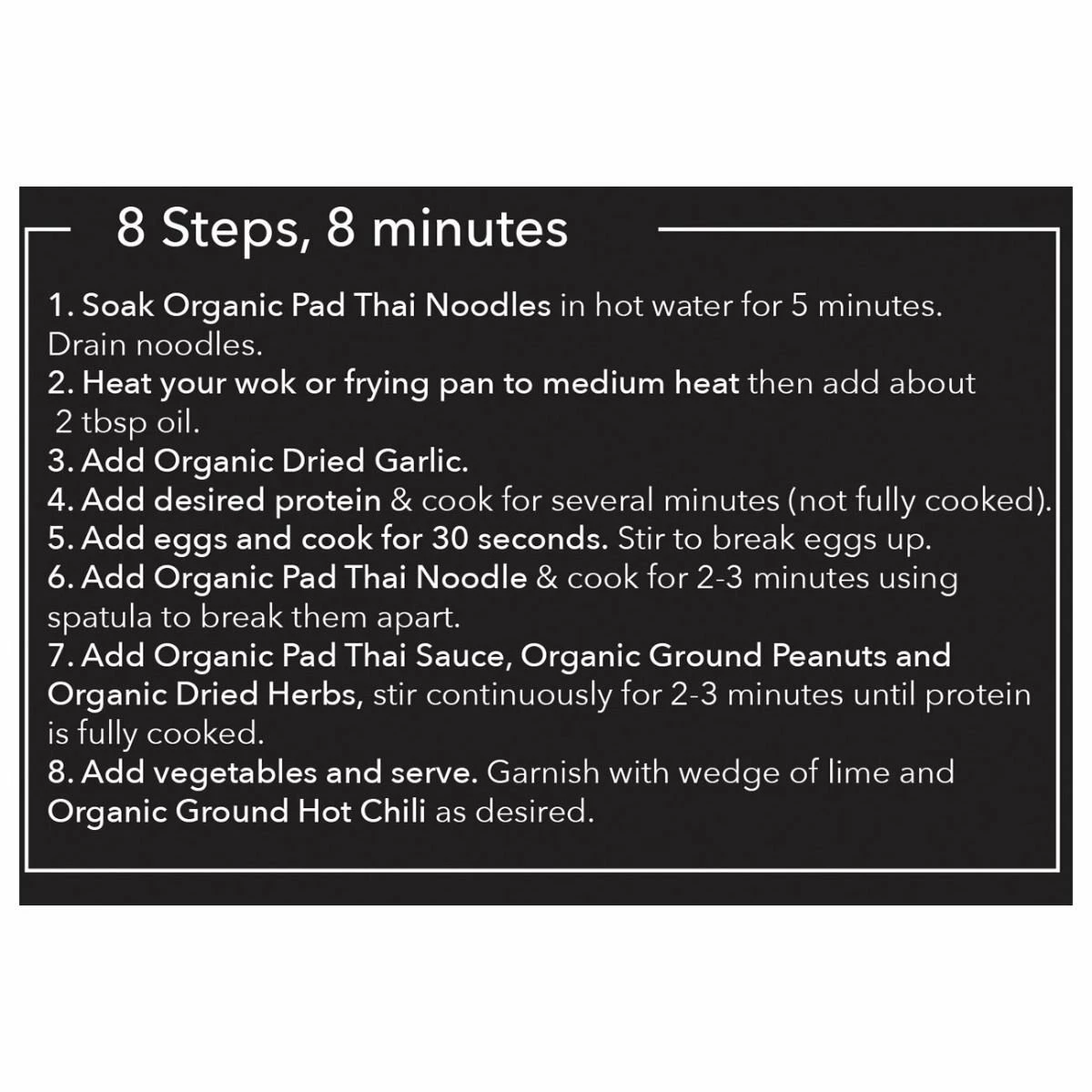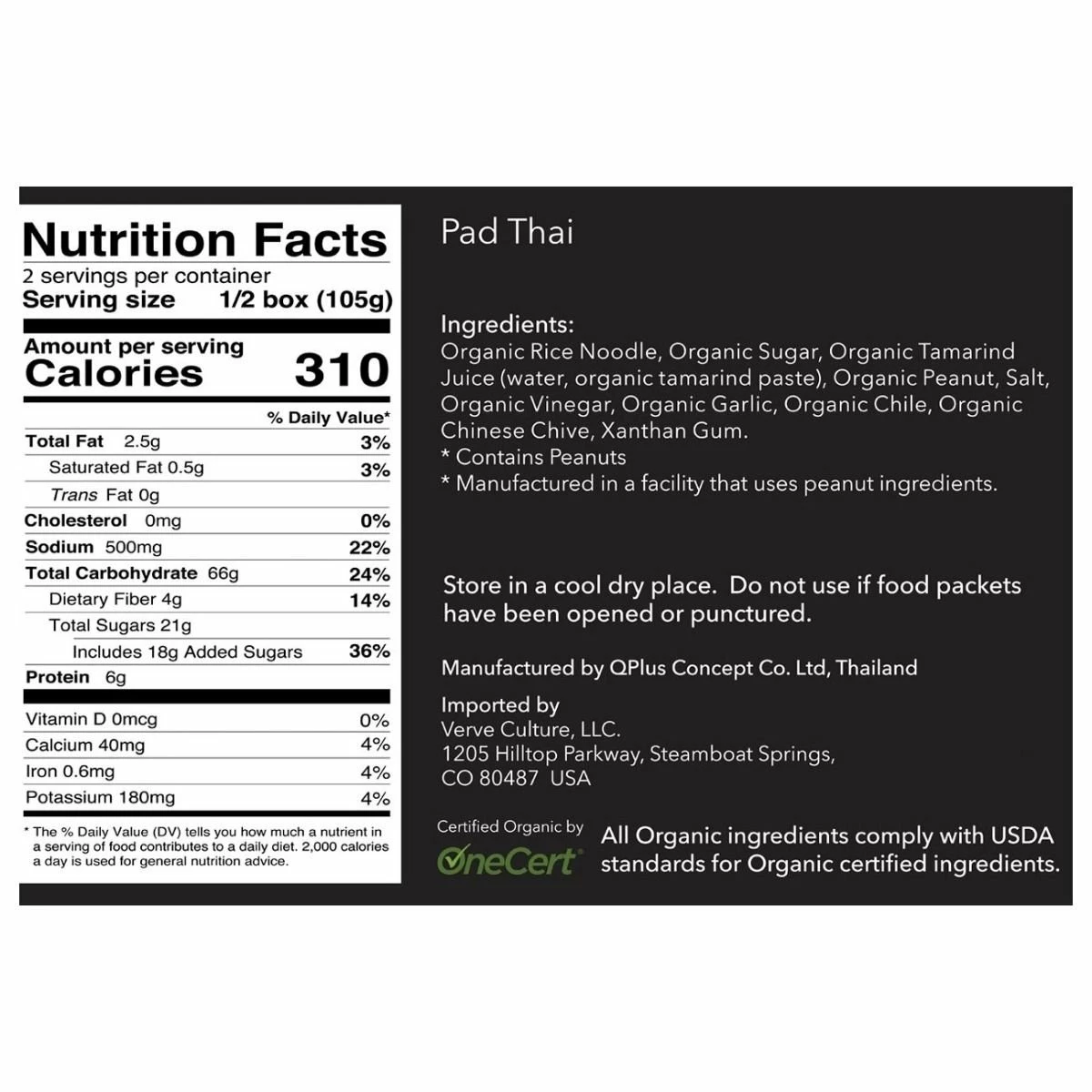 - Ingredients: Organic Rice Noodle, Organic Sugar, Organic Tamarind Juice (water, organic tamarind paste), Organic Peanut, Salt, Organic Vinegar, Organic Garlic, Organic Chile, Organic Chinese Chive, Xanthan Gum