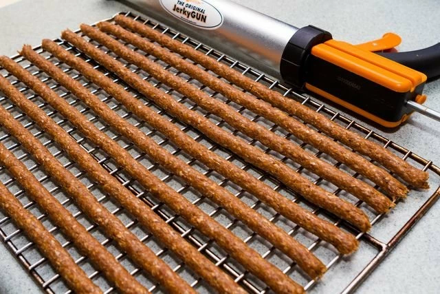 The Weston jerky gun holds up to 1.5 lbs of meat. This jerky making gun comes with 2 stainless-steel attachments; a double snack stick (1/2″ diameter) attachment and a double jerky strip attachment (1/8″ x 3/4″). You can use this jerky gun to make beef jerky, terriyaki jerky, venison jerky, and any other kind of jerky you can think of. Worry not, this jerky-making gun also comes with Weston’s Jerky Dust™ Classic Seasoning (12 oz).