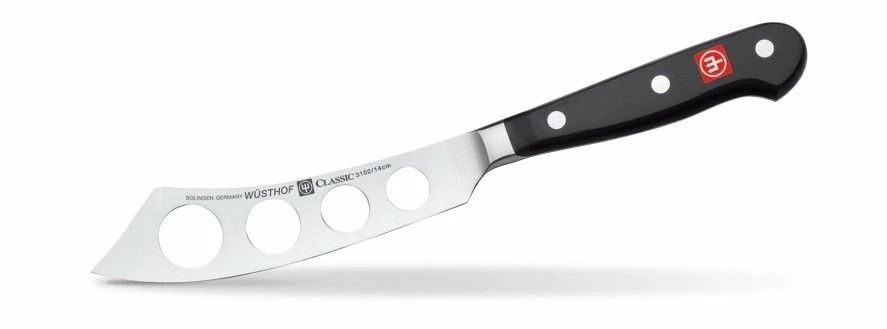 - Holes in the Wusthof Knife blade prevent the cheese from sticking to it.